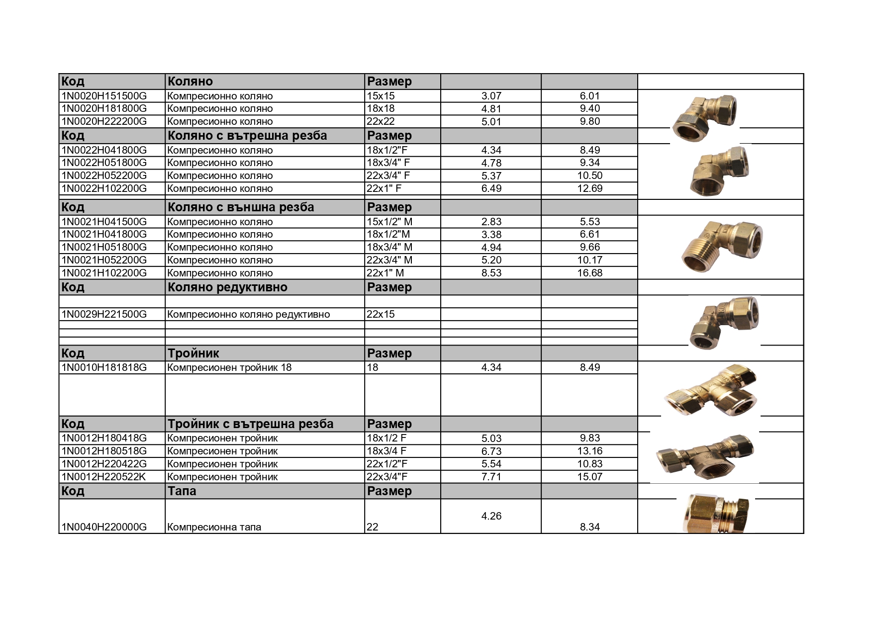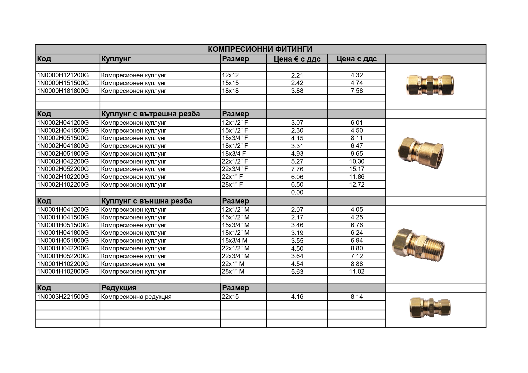 Компресиони фитинги за медни и стоманени тръби - ЦЕНИ